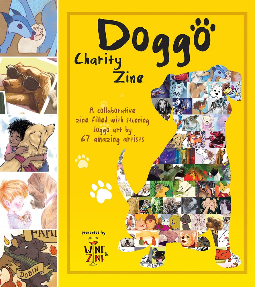 Wine and Zine are launching a new zine project, the Doggo Charity Zine! A collaboration of 67 talented artists, animators and dog lovers worldwide to create a vast variety of beautiful doggo art for charity! All proceeds from the zines will be going to www.dogstrust.org.uk (we are not affiliated or representatives of this charity) who specialise in the well-being, re-homing and rescue of dogs in the UK.